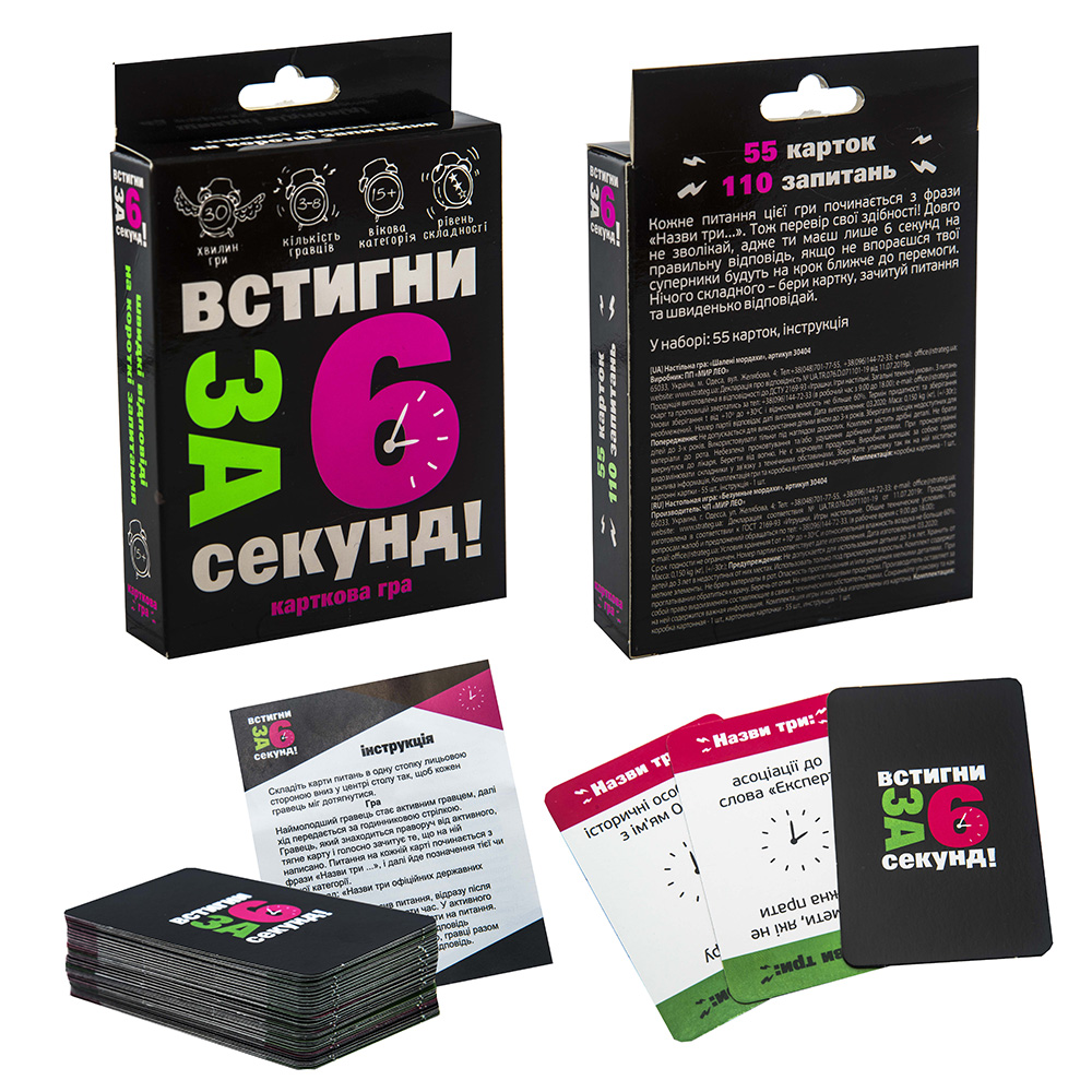 Карткова гра "Встигни за 6 секунд 15+", українська , у кор. 13,5*9*2,2см, ТМ Стратег, Україна (66шт)